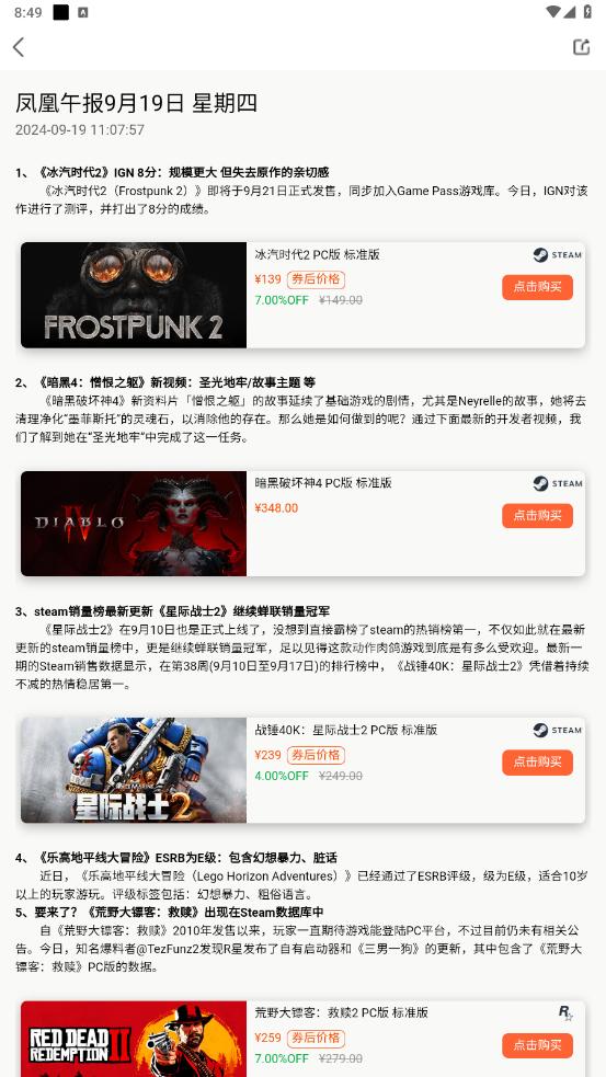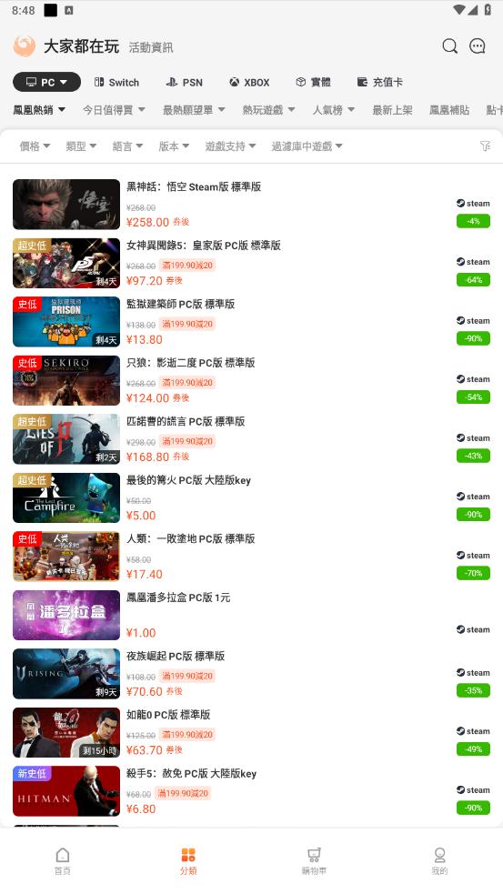 同步凤凰游戏PC端,移动端可随时查看最新上架,独家特价,折扣促销,特惠礼包,满减优惠,喜加一等活动