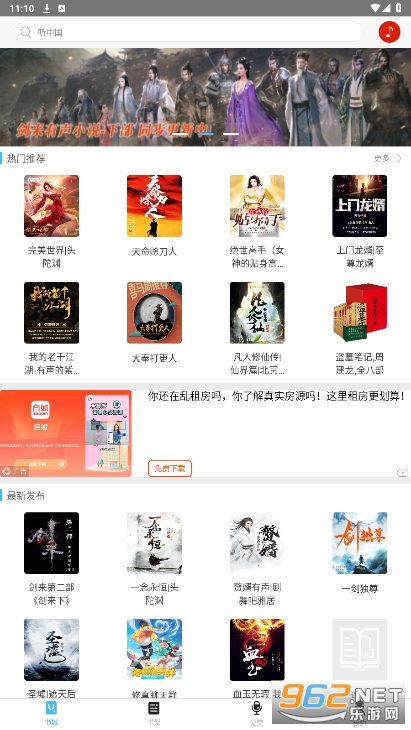 2、【热门小说】各种热门小说也设置的有声小说的模式,方便用户可以轻松的进行播放。