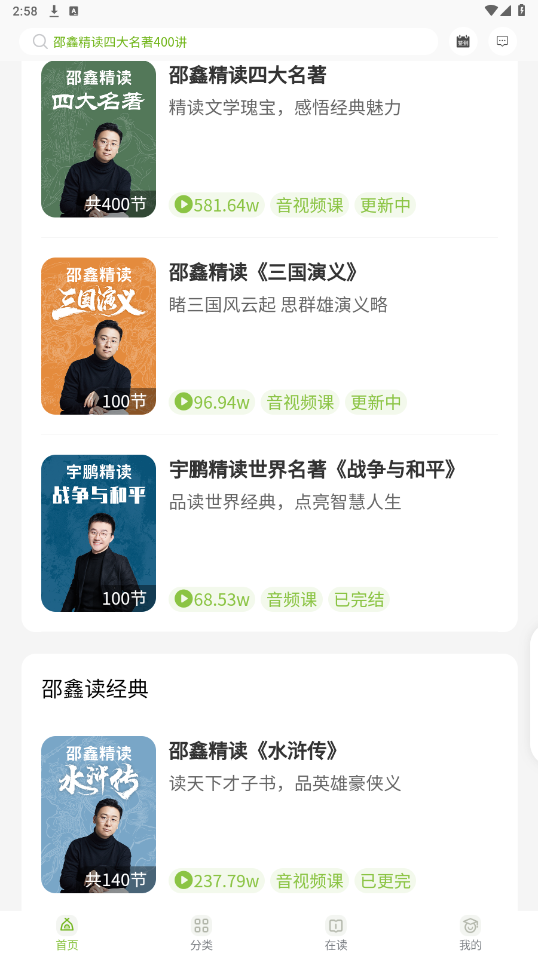 《宜读经典》由邵鑫老师本人深度解读10本必读经典名著,从经典中汲取人生智慧和心灵养分,学习读书方法,让你明白经典如此有趣。