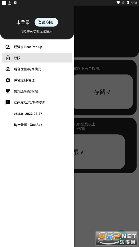 2.启动APP后点击右侧存储按钮,点击后将弹出;允许Bear Pop-up访问设备上的文件吗?的抉择框,点击允许,完成后返回APP界面,发现存储按钮右侧出现√,即为权限获取成功。