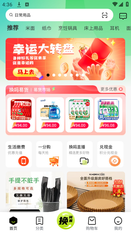 1.下载安装并打开换吗app,进入首页之后点击【我的】