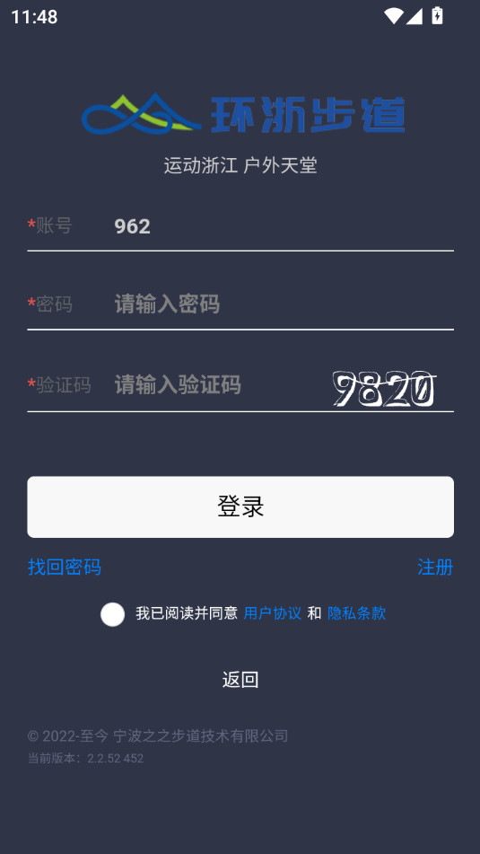 下载安装并打开环浙步道app,点击同意