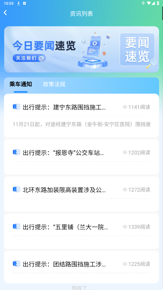 出行资讯功能,实时发布公交出行提示,全方位提供线路优化、站点调整、大型节会公交出行服务等官方信息。