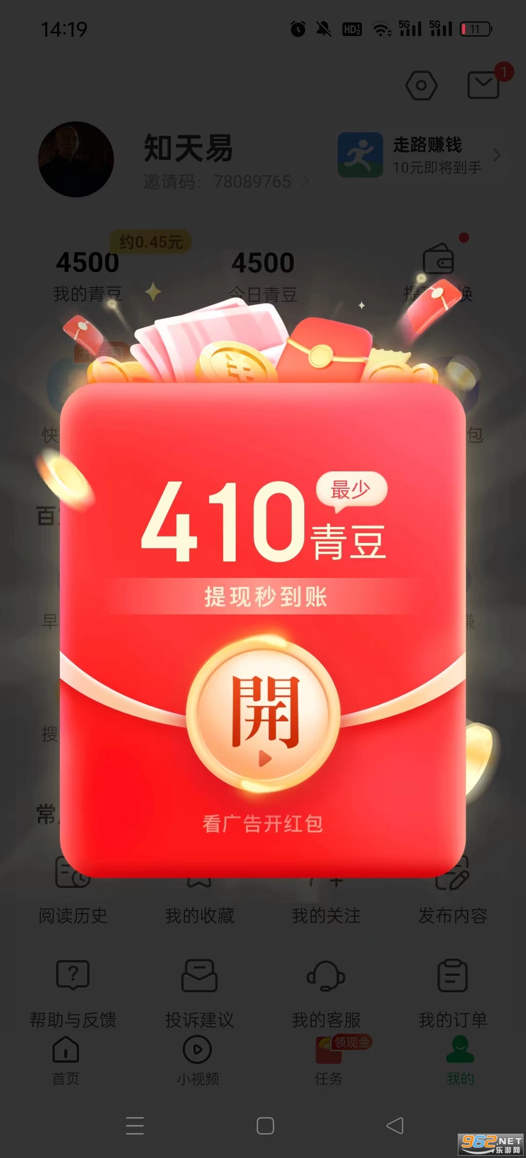 2、观看视频赚钱,每天认真观看视频,可获得一定数量的青豆,另外,还有机会获得888元幸运青豆奖励