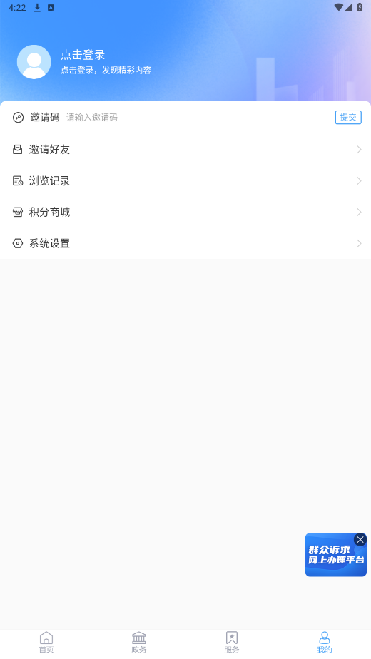打开阳信融媒app, 点击我的