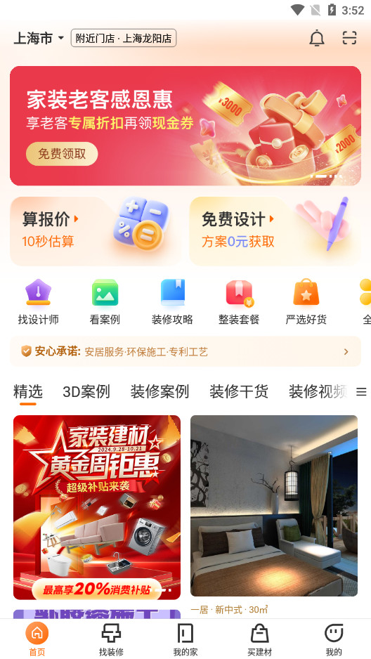 《住小橙百安居app》是一款整合家装设计、建材选购与施工服务的一站式垂直领域电商平台,聚焦3D户型建模、智能预算测算、全品类家居商城三大核心模块,为消费者提供从设计到落地的数字化家装解决方案。通过标准化供应链管理实现建材直采与同城配送,结合BIM系统实现施工流程可视化,实时追踪订单进度与工地动态。