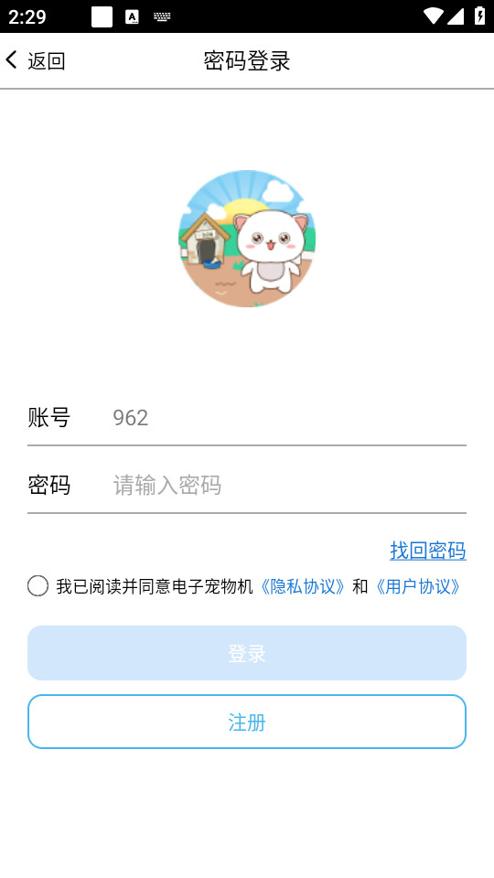 下载安装并打开电子宠物机app,点击确定,同意隐私政策