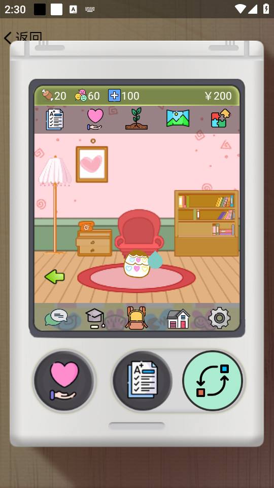 《电子宠物机》是一款集休闲、养成与互动于一体的应用,它允许用户在虚拟世界中照顾和陪伴自己的宠物。用户可以在应用中领养宠物,进行喂食、清洁、玩耍等日常照料,并通过互动增加宠物的心情值和健康度。还提供了丰富的场景和玩法,如公园、游乐园、市场等,让用户在虚拟世界中享受养宠的乐趣。用户可以在便利店购买各种食物来喂养宠物,确保宠物的营养需求得到满足。宠物需要定期清洁,包括打扫客厅和进卫生间,以保持宠物的干净和舒适。可以通过点击、抚摸等方式与宠物进行互动,增加宠物的心情值。