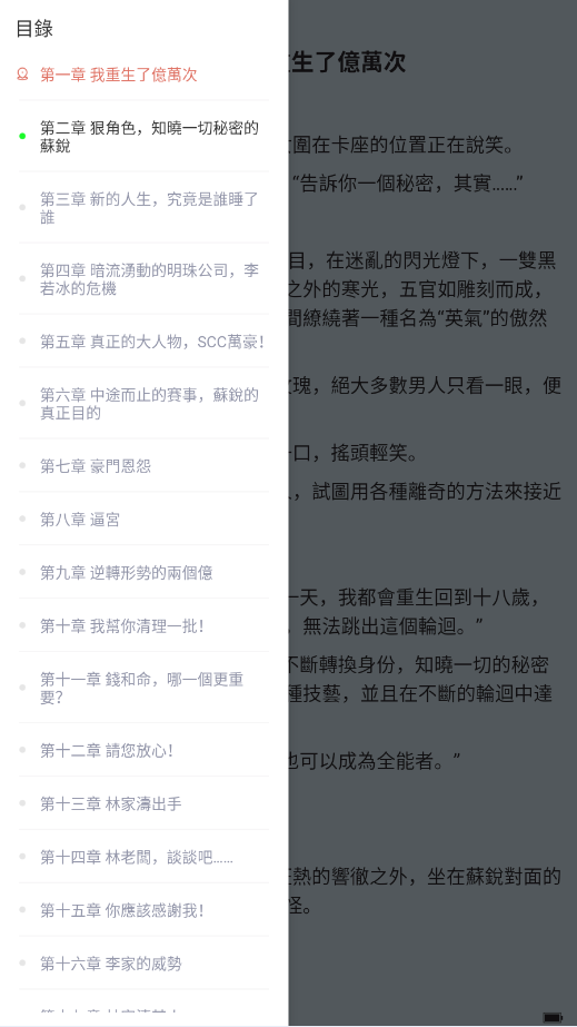 进入阅读界面,点击中间区域唤出菜单