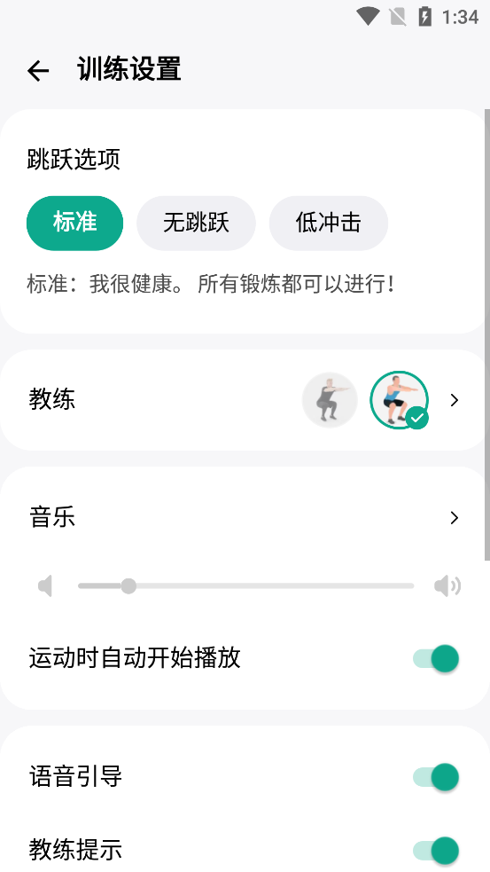 进入软件前会有着一些问题,根据自己的实际情况进行选择,选择完后会自动生成一份锻炼计划