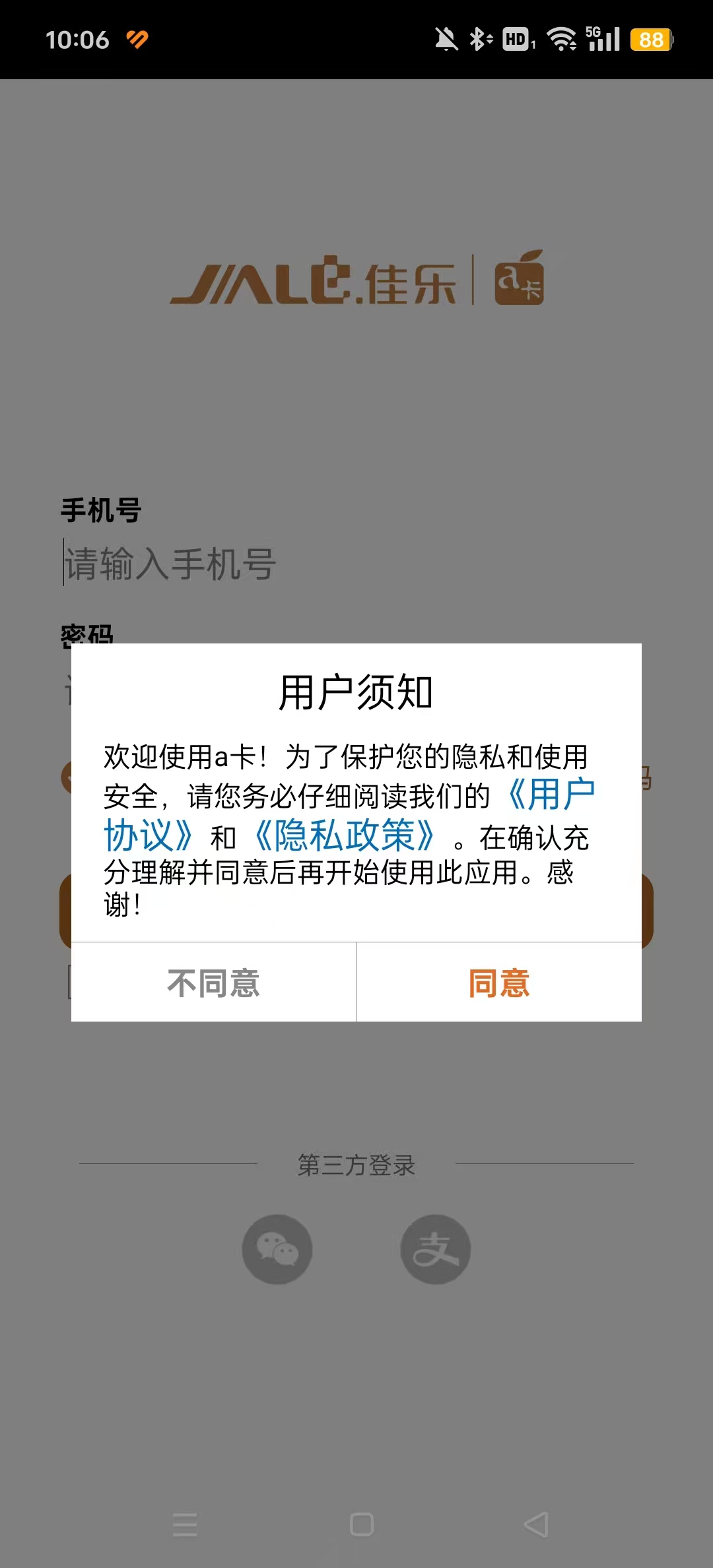 1、首次使用请下载a卡APP。