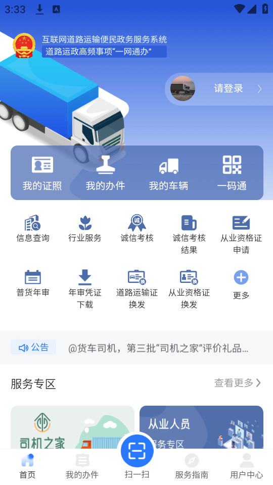 互联网道路运输便民政务服务系统官方app,能够直接在线办理各种政务,是全国一体化在线政务服务平台,对营运车辆以及相关的从业人员直接进行相关的审核,查询各种行业信息,快来下载吧!