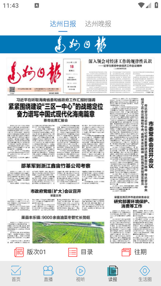 《达州融媒app》是由达州市广播电视台自主研发的权威新闻发布平台,用户可以通过达州融媒APP实时观看达州广播电视台的电视节目,包括新闻、综艺、电视剧等各类节目。提供及时、全面的新闻资讯,包括本地新闻、国内新闻、国际新闻等,满足用户的不同需求。提供政务信息公开服务,让用户能够方便地了解政府的工作动态和各类政策信息。