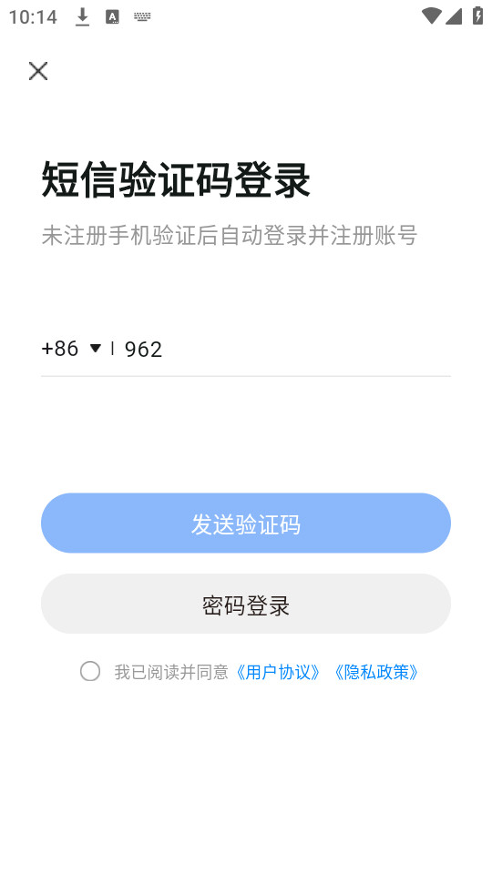 2.输入手机号验证码等信息,勾选隐私协议,进行【登录】