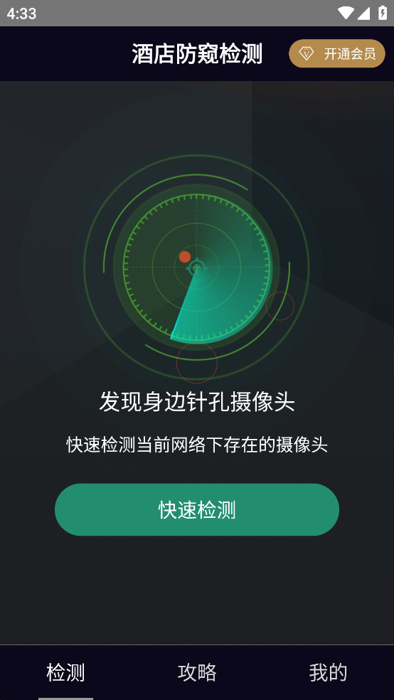 《酒店防窥检测》是一款专门设计用于检测酒店、民宿等住宿场所内隐藏摄像头的手机应用程序。它利用先进的无线信号检测技术、红外探测技术以及数据挖掘技术,能够快速、准确地识别出房间内可能存在的针孔摄像头、网络摄像头等偷拍设备,有效保护住客的隐私安全。