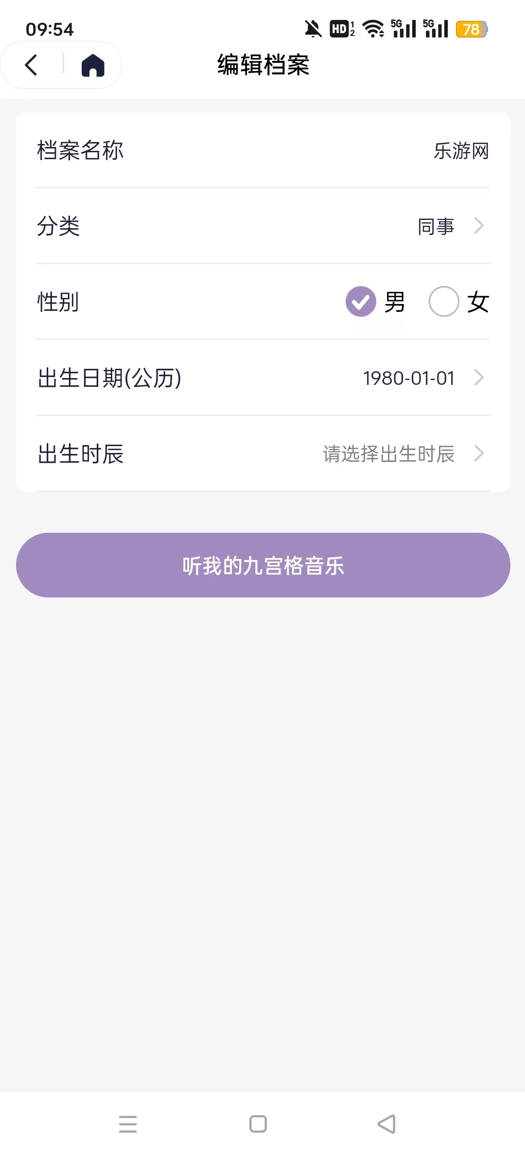 5、编辑个人档案,按照指定要求填写,填写完毕后,点击【听我的九宫格音乐】。