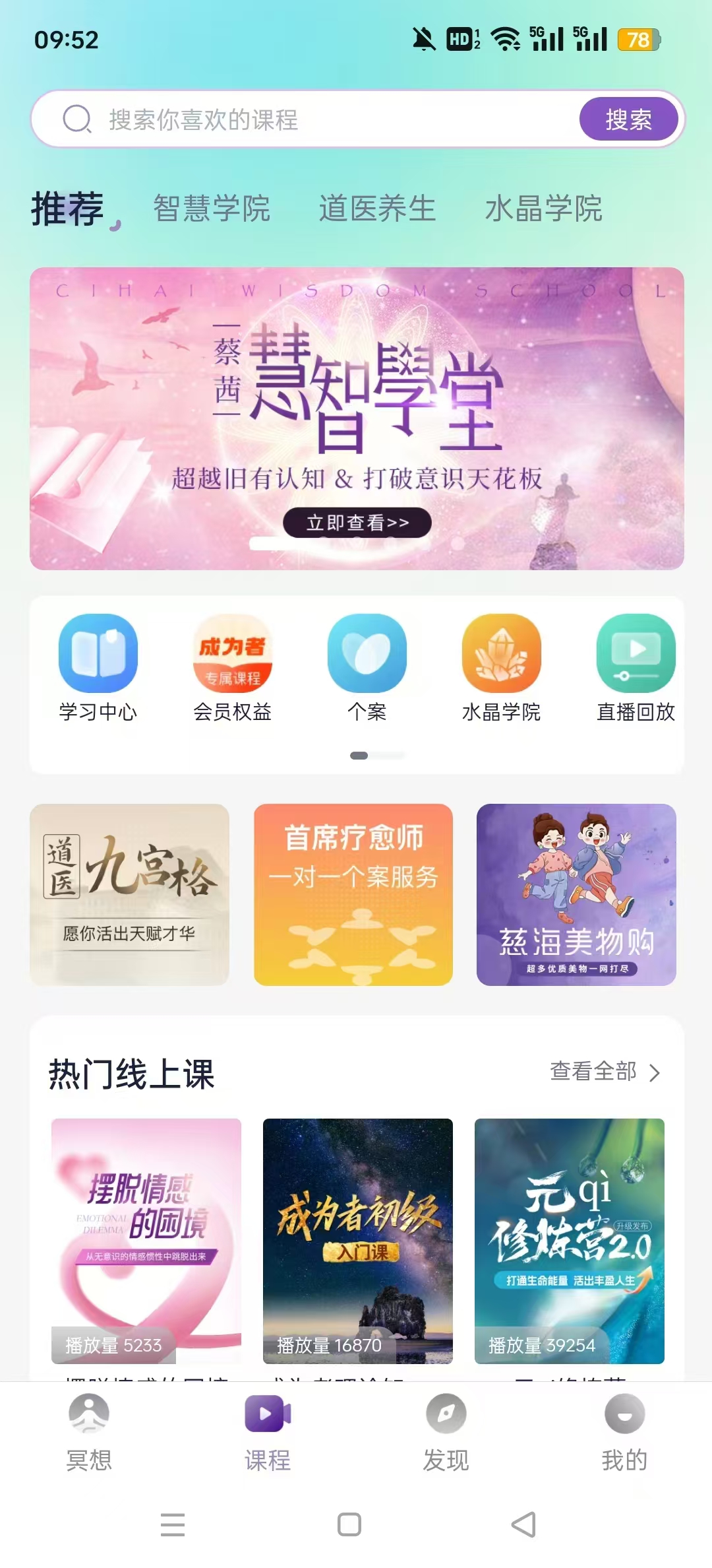 1、打开慈海商城手机端慈海冥想APP以后,找到你所想要进行学习聆听的冥想课程。