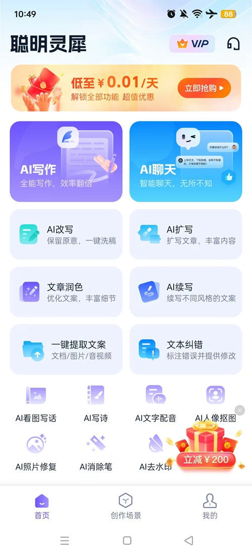 聪明灵犀是一款功能强大的智能编辑软件,产品内置了高级的ai分析功能,支持智能AI聊天和AI写作,新版本增加了多种创作场景,不管是心得体会还是旅行笔记,专业影评或者是复盘报告,聪明灵犀均能提供非凡的帮助!同时我们还具备诸多实用小工具,如文字转语音、人像抠图、消除笔、照片修复等,是一位生活办公的好帮手