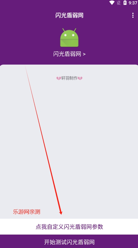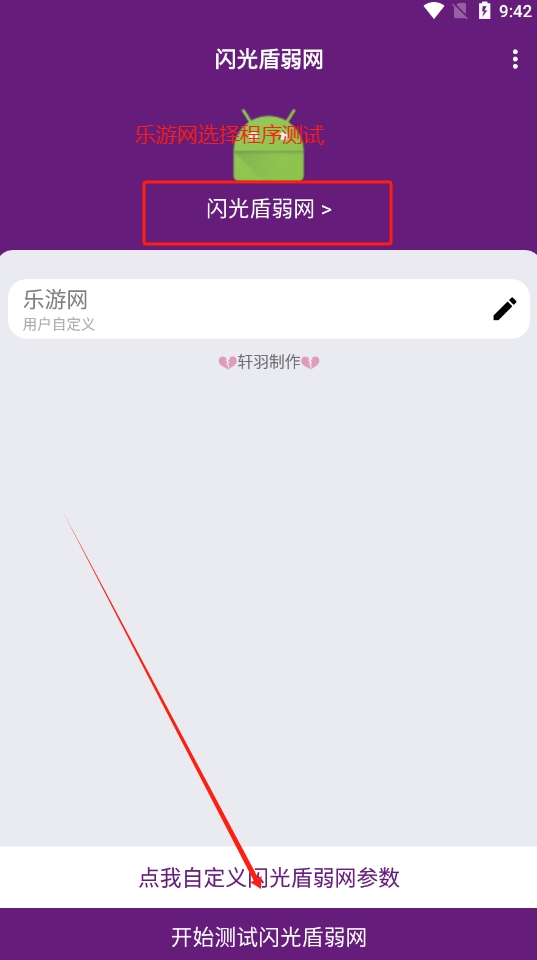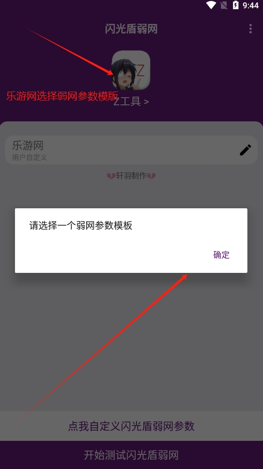 1、下载962乐游网闪光盾弱网软件,打开“点我自定义闪光盾弱网参数”配置。