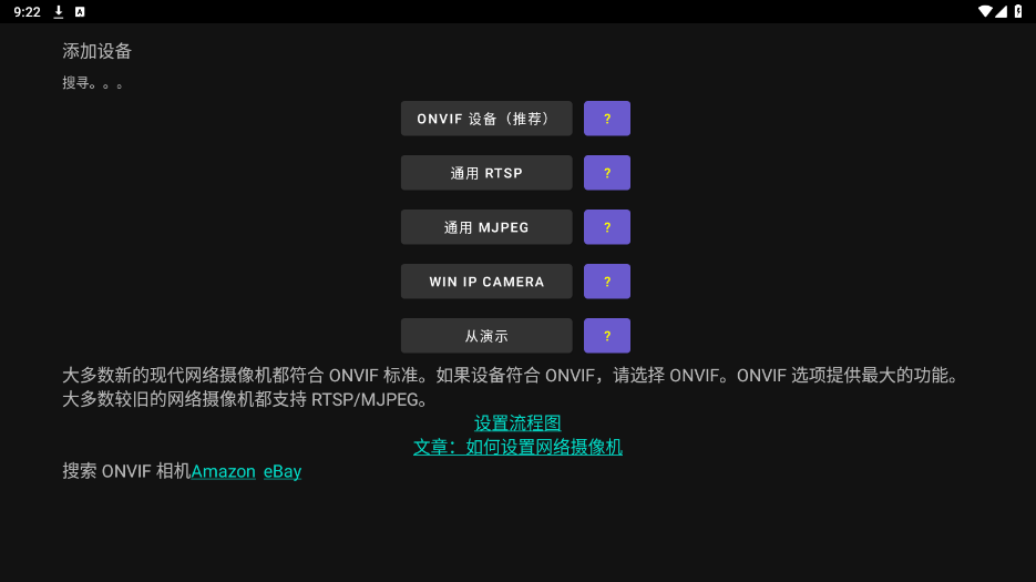 对于ONVIF相机,您可以运行ONVIF客户端应用程序来发现相机。以下是适用于Android的Onvier、适用于Windows 8.1/10的IP CENTCOM和适用于Windows Phone的IP CENTCOM。