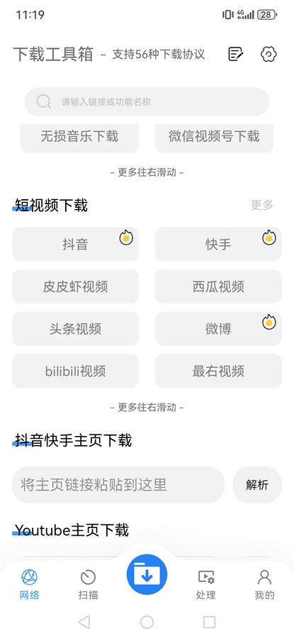 3、这款软件支持国内主流平台短视频和国际视频(自备上网工具)无水印解析下载。