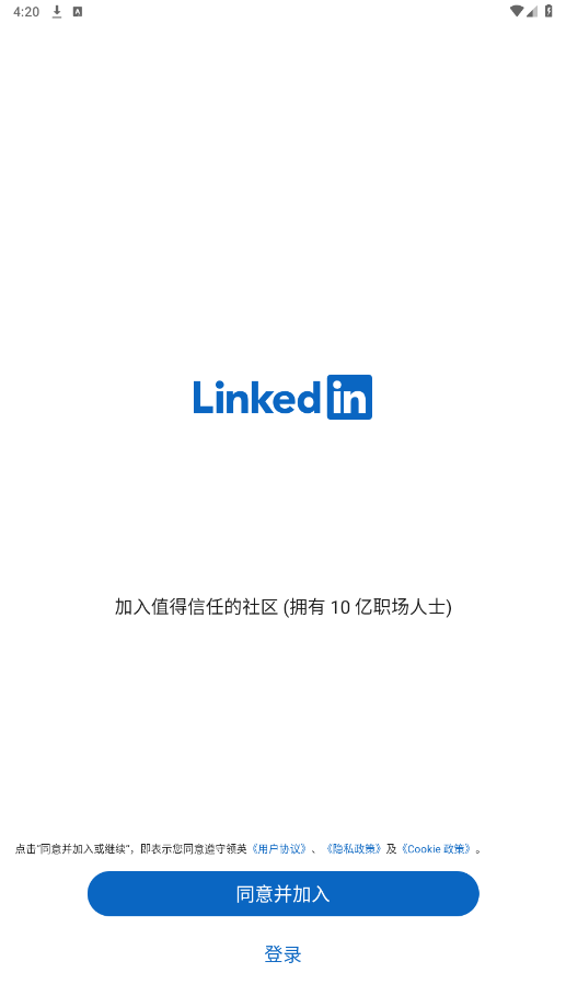 打开linkedin app,点击同意并加入