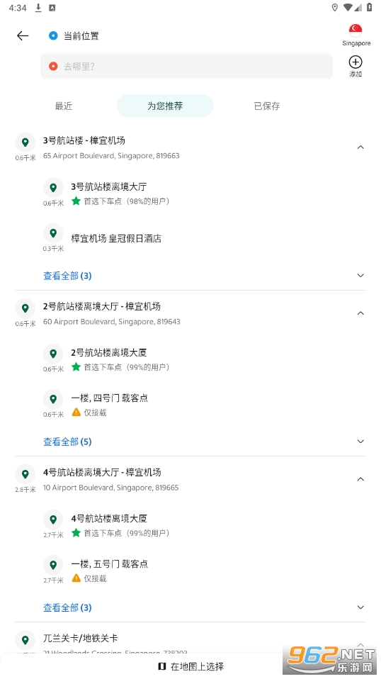 2. 开始预订!程式将会自动侦测您的所在位置设为接送点。选择您的目的地。