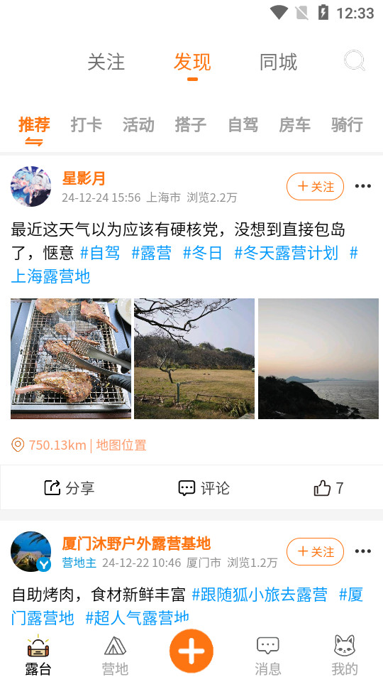 各种露营达人在线云集
