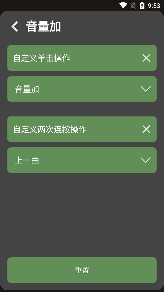 点击【自定义两次连按操作】,选择一个功能,比如【上一曲】