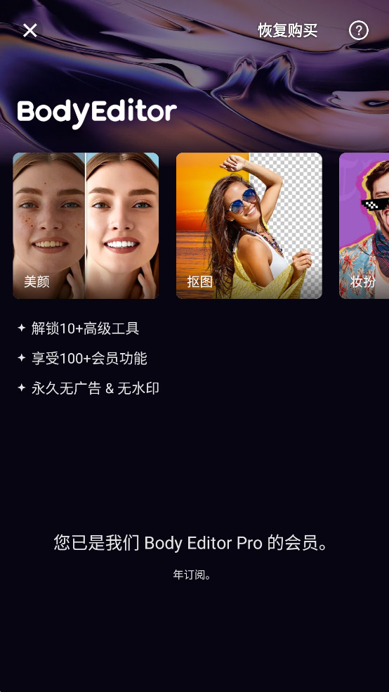 Body Editor您的终极人工智能照片编辑器和自拍修饰器。