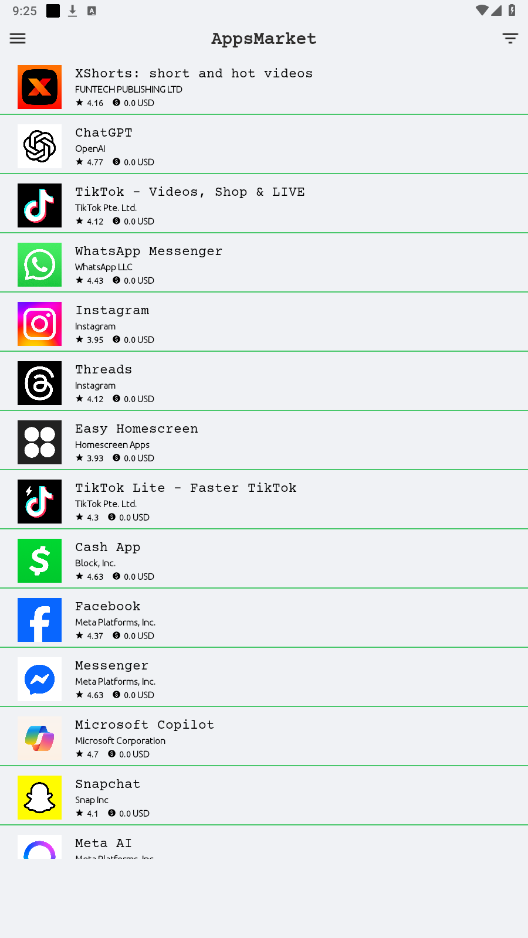 AppsMarket是美国Playstorepro和+147个国家/地区最好和顶级应用程序的集合。使用AppsMarket探索美国Playstorepro中的热门新应用、热门应用和热门免费应用也按应用类别和集合进行筛选。