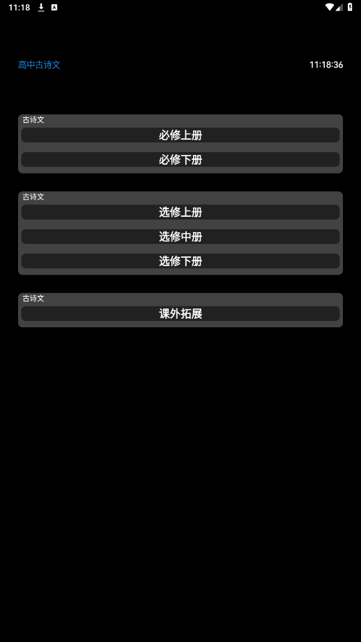进入首页,你可以根据自己的需求选择功能,比如选择高中古文
