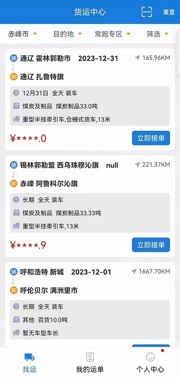 3、浏览货源中心发布的实时运输需求,根据路线与货物类型筛选订单。