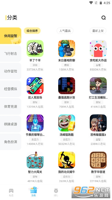4.盒子内游戏种类繁多,囊括休闲益智.动作射击.角色扮演.赛车竞速.体育竞技.模拟经营.冒险.格斗等等类型的热门手游。