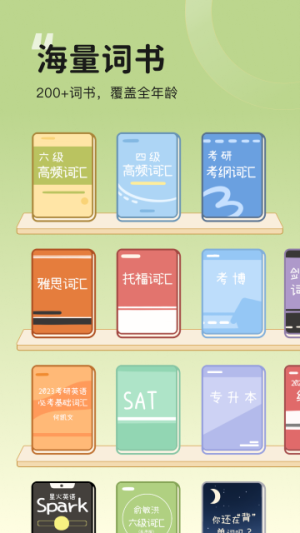 1、海量单词库,平台提供丰富的英语单词资源,用户可以根据兴趣和需求自由选择,满足不同学习阶段的需要。