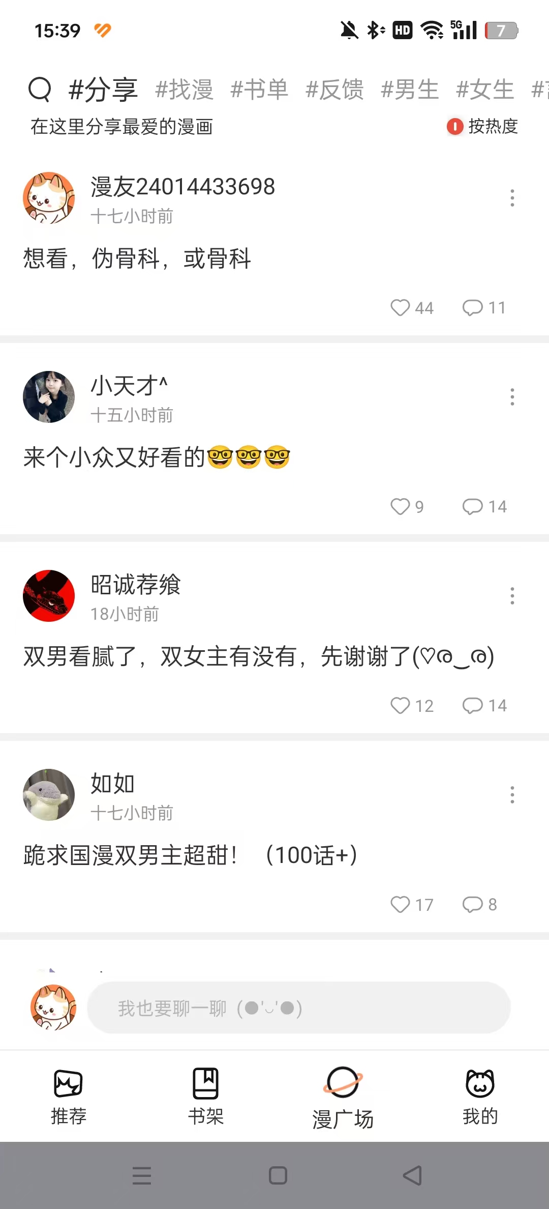 喵趣漫画APP中还有书单广场和社区功能,可以在书单广场中找到各种类型的漫画的合集,在社区中可以求推荐漫画也可以给别人推荐自己喜欢的漫画,或者看别人的推荐,随便点开一部漫画看更新,每天实时更新,很及时!