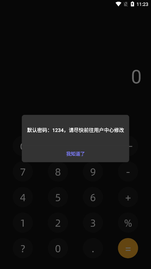 1、在本站下载VTalk通讯加密技术app并打开,进入后输入默认密码1234,点击“=”号继续接下来步骤操作。
