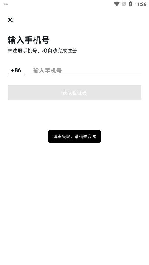 3、输入手机号注册,为注册的手机号将自动注册完成。