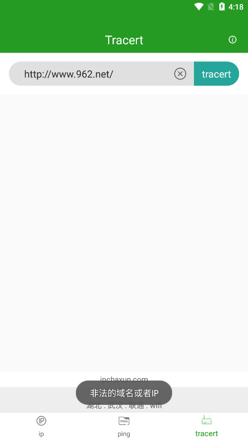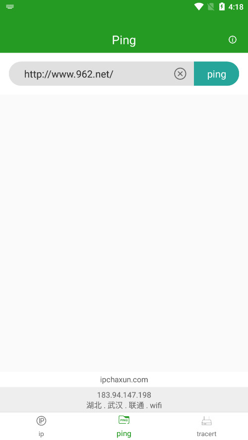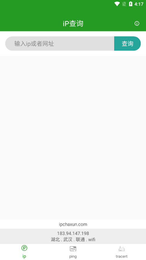 3、按照你的实际需求,设定好条件(IP、Ping、Tracert),将地址复制到上方查询处,点击按钮查询即可。