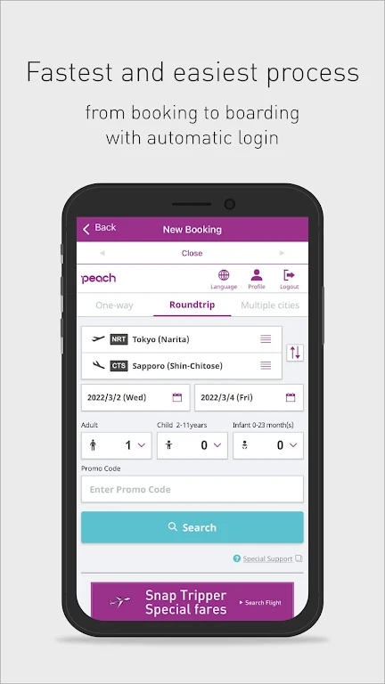 《Peach》是日本廉价航空的“轻量化出行管家”,专为追求性价比的年轻旅行者打造。软件支持中文界面与一键多币种支付,覆盖东京、大阪、冲绳等热门航线,实时推送“99元秒杀”“早鸟特惠”等限时折扣。核心功能包括智能行程规划、行李额度弹性加购、电子登机牌无纸化通关,更有“旅行灵感”板块推送目的地小众玩法与网红餐厅。