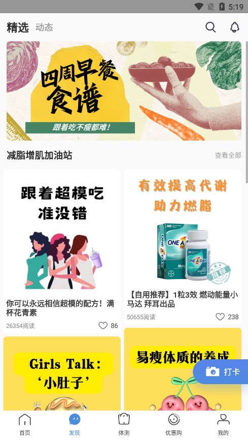 每天定时推送专业健身知识,内容涉及减肥、运动、饮食、母婴、健康贴士等。