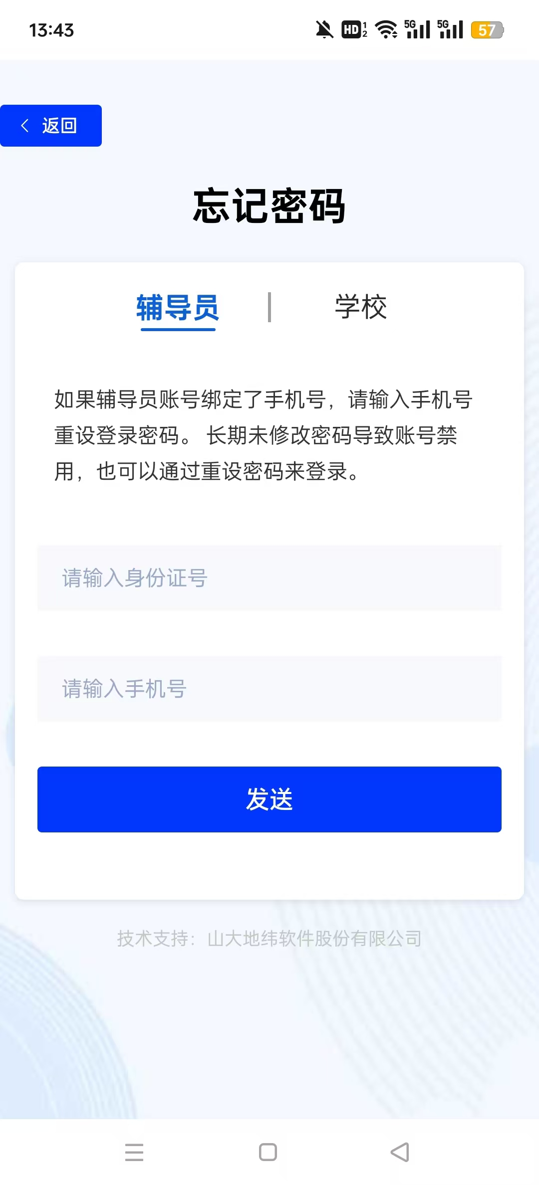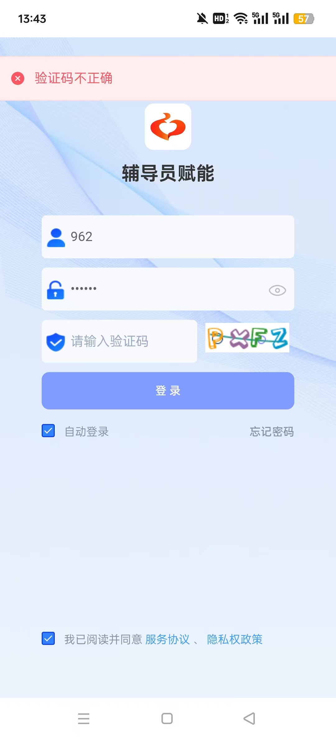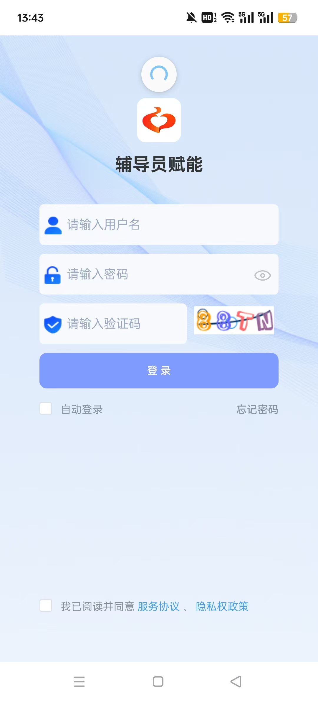 1、进入到辅导员赋能app后,输入自己的用户名信息,之后点击登录;