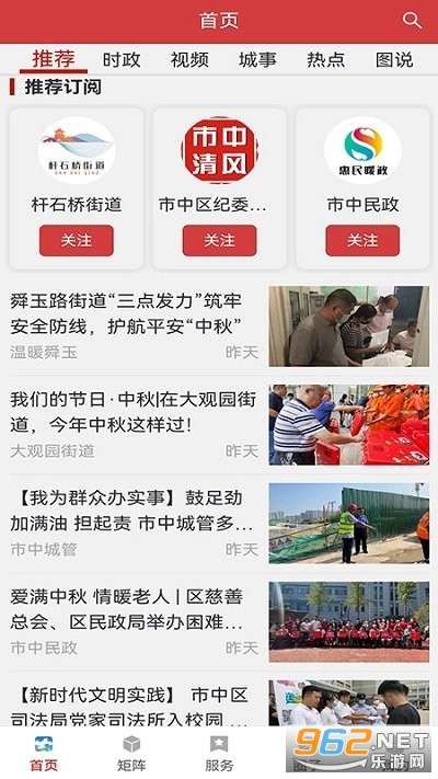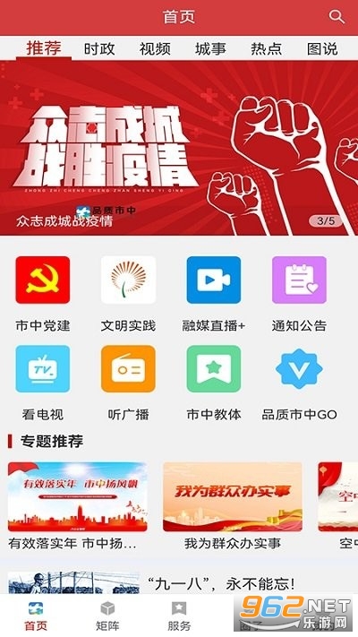 品质市中功能强大、内容更富,在APP首页设置了推荐、要闻、早报、视频、本地、热点、专题、教育等10个频道分类,成为权威发布的主流阵地,同时结合市中实际和融媒特色,创新设置了“书记圆桌会议”、“文明实践”、“融媒矩阵”、“市中战疫”、“AI课堂”、“VR全景”等多个特色栏目,深受用户欢迎。