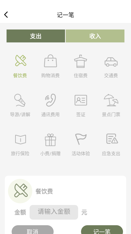 3、可选择支出和收入,包括餐饮、购物、住宿、交通等等,让花出去或者收入的每一笔钱都有明细。