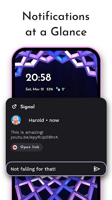 直接在主屏幕上阅读收到的消息。通过向右滑动查看完整通知。此外,广告或持久通知等不需要的消息也会被阻止。