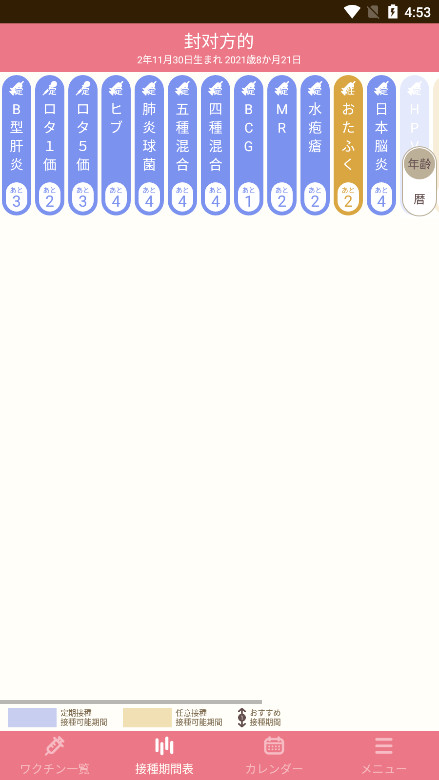 年龄提醒:根据不同年龄段提醒您宝宝应该接种哪些疫苗。