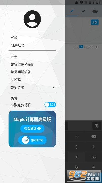 Maple计算器可以说功能非常之强大,是小编目前在手机上见过的最强大的计算器app了,比手机自带的计算器功能不知道强大多少倍,内置微积分、矩阵、解方程组等等实用功能!