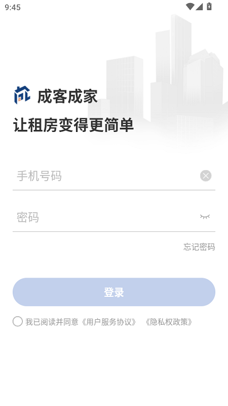 3、打开软件,填入对应信息即可登录查看自己的租房信息。