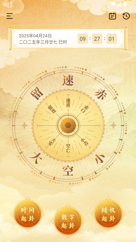 1、软件主界面下方有三种不同起卦方式,分别是时间、数字、随机,大家可以根据需求选择。