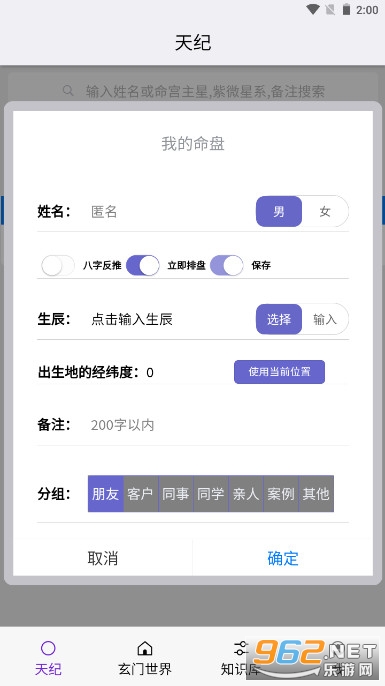 天纪排盘软件微斗数排盘软件拥有多样化的算法模式,用户只需要注册账号之后,就能使用里面的所有功能了哦。里面拥有紫微斗数、子平八字、易经推命等,输入你的姓名以及其他的信息,就可以开始测算了。
